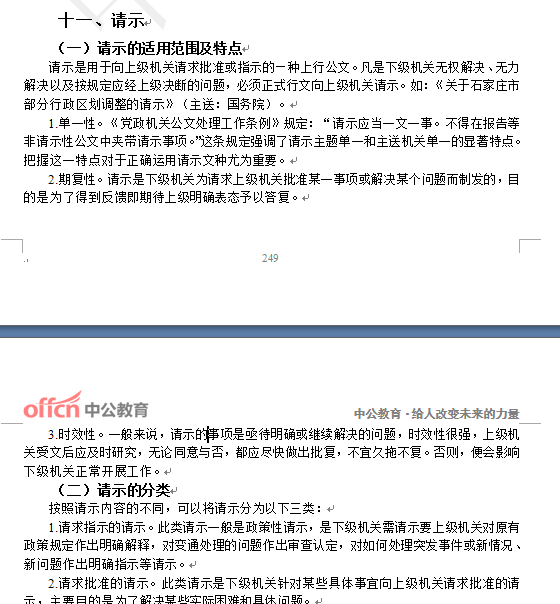 关联情况:滨州遴选辅导班讲义P249-P251,详细讲解了“请示”的特点及写作思路。