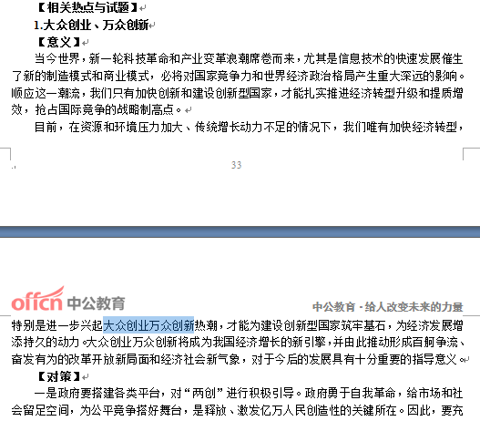 (2)滨州遴选笔试辅导班讲义P33-P34关联“大众创业万众创新”热点