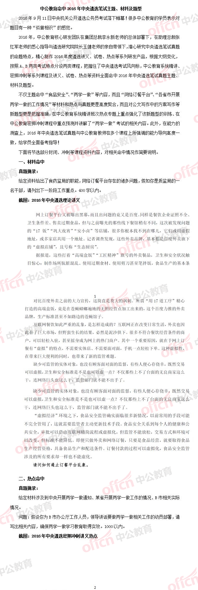 中公教育关联2016年中央遴选笔试主题、材料及题型
