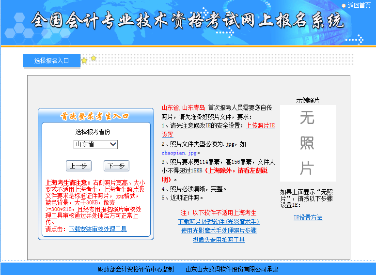 二:阅读报名须知后选择报考省份(注意IE设置,照片大小,避免填写报名信息时无法提交)