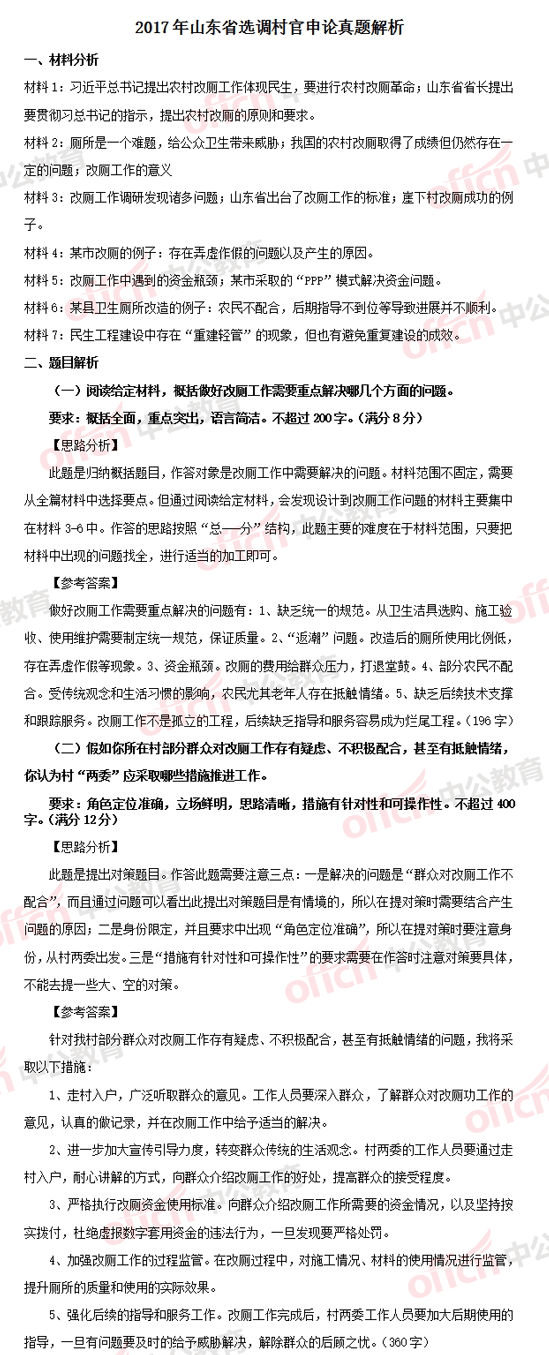 2017山东选调村官申论真题答案解析