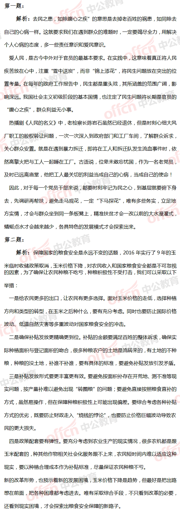 2017山东选调村官面试真题答案解析(4月28日上午)