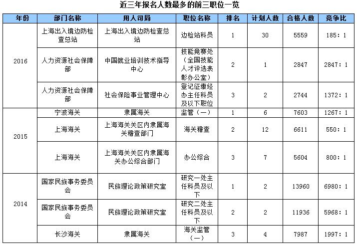 根据近三年国家公务员考试热门职位分析可看,以下这些职位是近年国考报考热门职位: