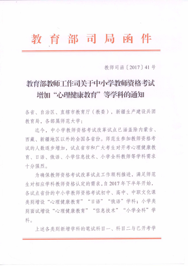 重要通知!2017下半年教师资格将增设心理健康教育等学科!