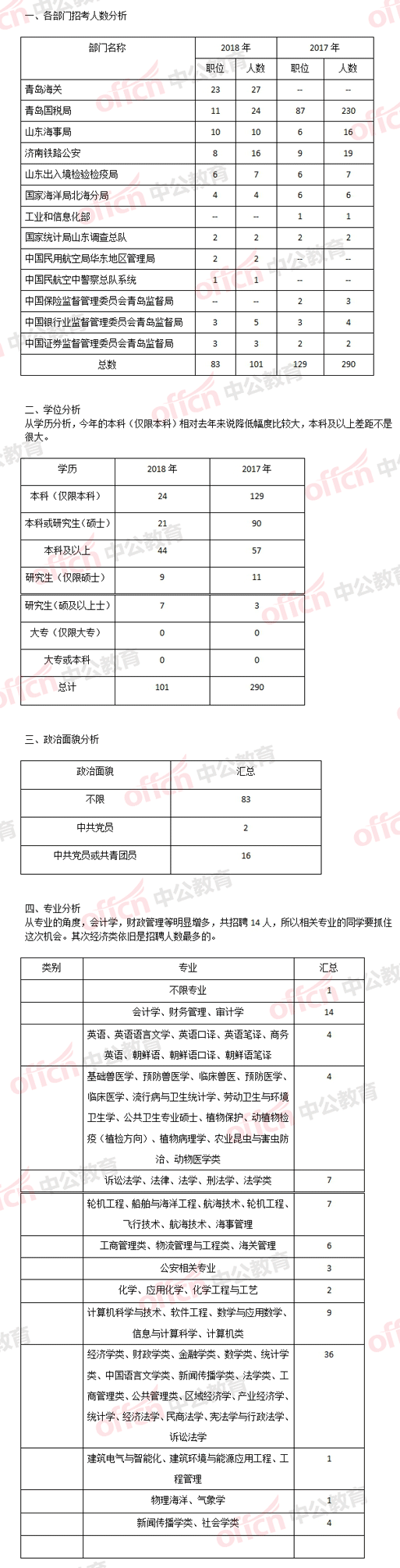 2018年国家公务员考试公告以及职位已经发布,小编特此针对青岛地区的职位给广大考生进行分析解读。