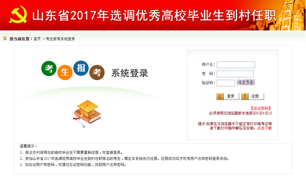 2018山东选调高校毕业生到村任职网上报考操作说明