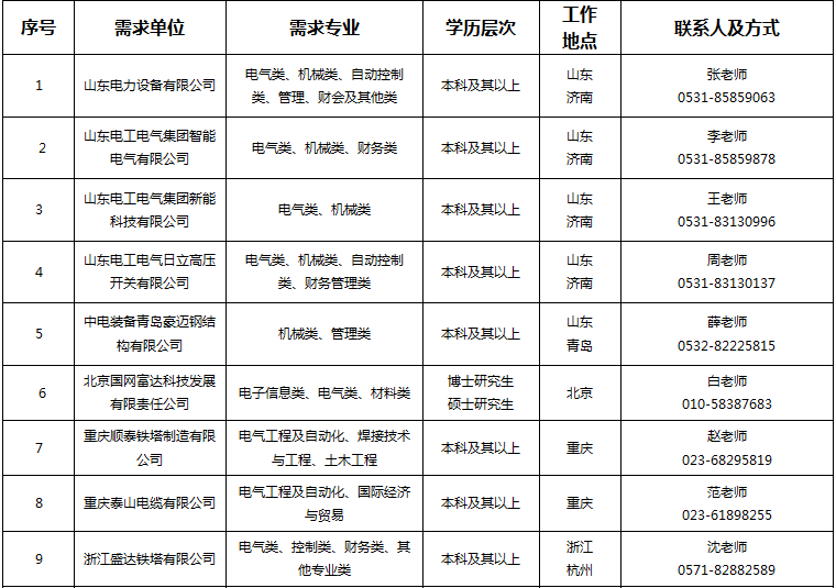 2018年公司及所属单位计划招收应届博士、硕士、本科毕业生约120人,专业涉及电气类、机械类、控制类、电子信息类、材料类、财务类、管理类及其他专业,具体详见各单位需求计划。