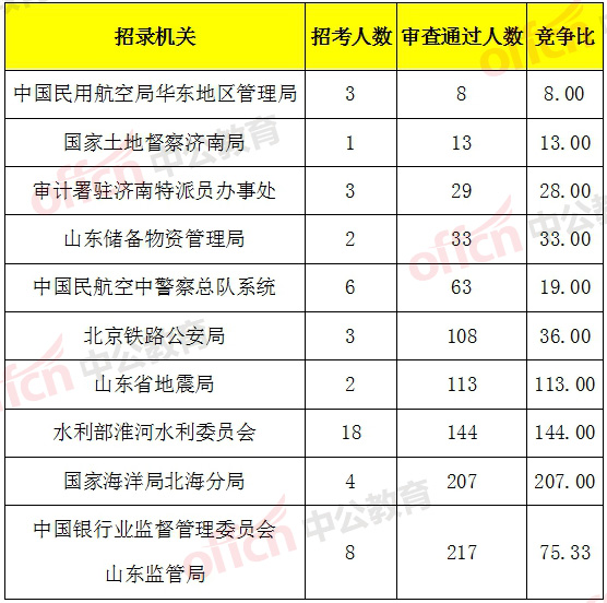 2018国考山东地区无人过审职位和资格审查合格人数比例较低职位一览表(截至8日8时)