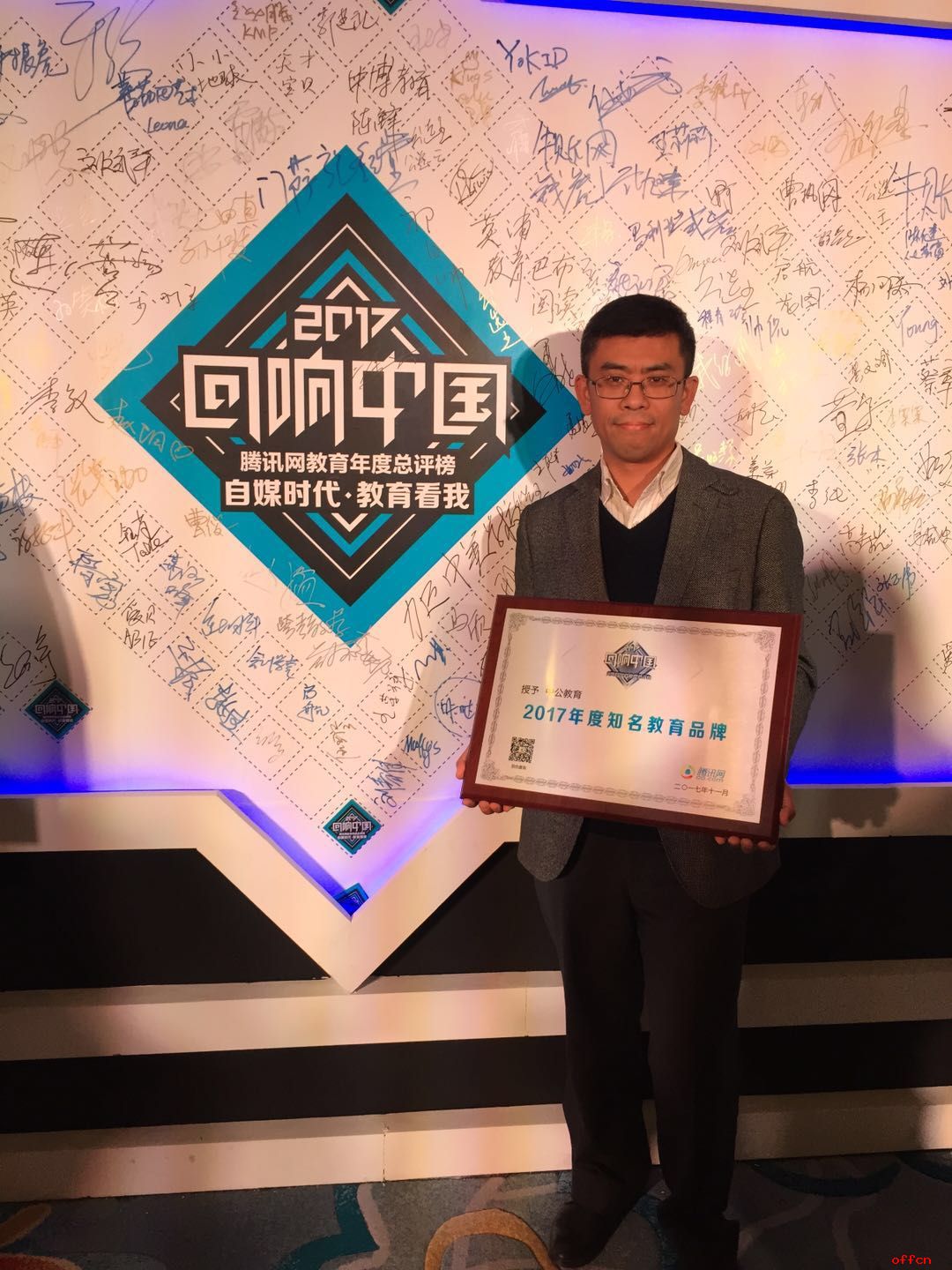 2017年,是教育行业竞争激烈、快速发展的一年。11月22日,由腾讯网主办的2017“回响中国”教育年度总评榜荣耀盛典在北京中国大饭店落下帷幕,中公教育凭借自身在职业教育领域的品牌实力以及良好口碑,荣获“2017年度知名教育品牌”奖。中公教育副总裁张永生代表出席此次活动。