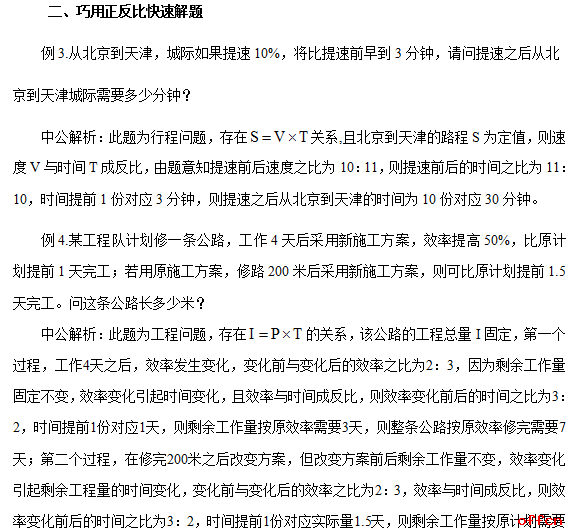 工程问题、行程问题一直是公务员考试行测中的重点题型,而在这两种题型中采用比较多的一种方法是正反比巧妙判断应用,能够非常快速的去解决一些基础的行程问题、工程问题,在此中公教育专家做进一步详细讲解。