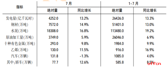 2011年7月规模以上工业生产主要数据