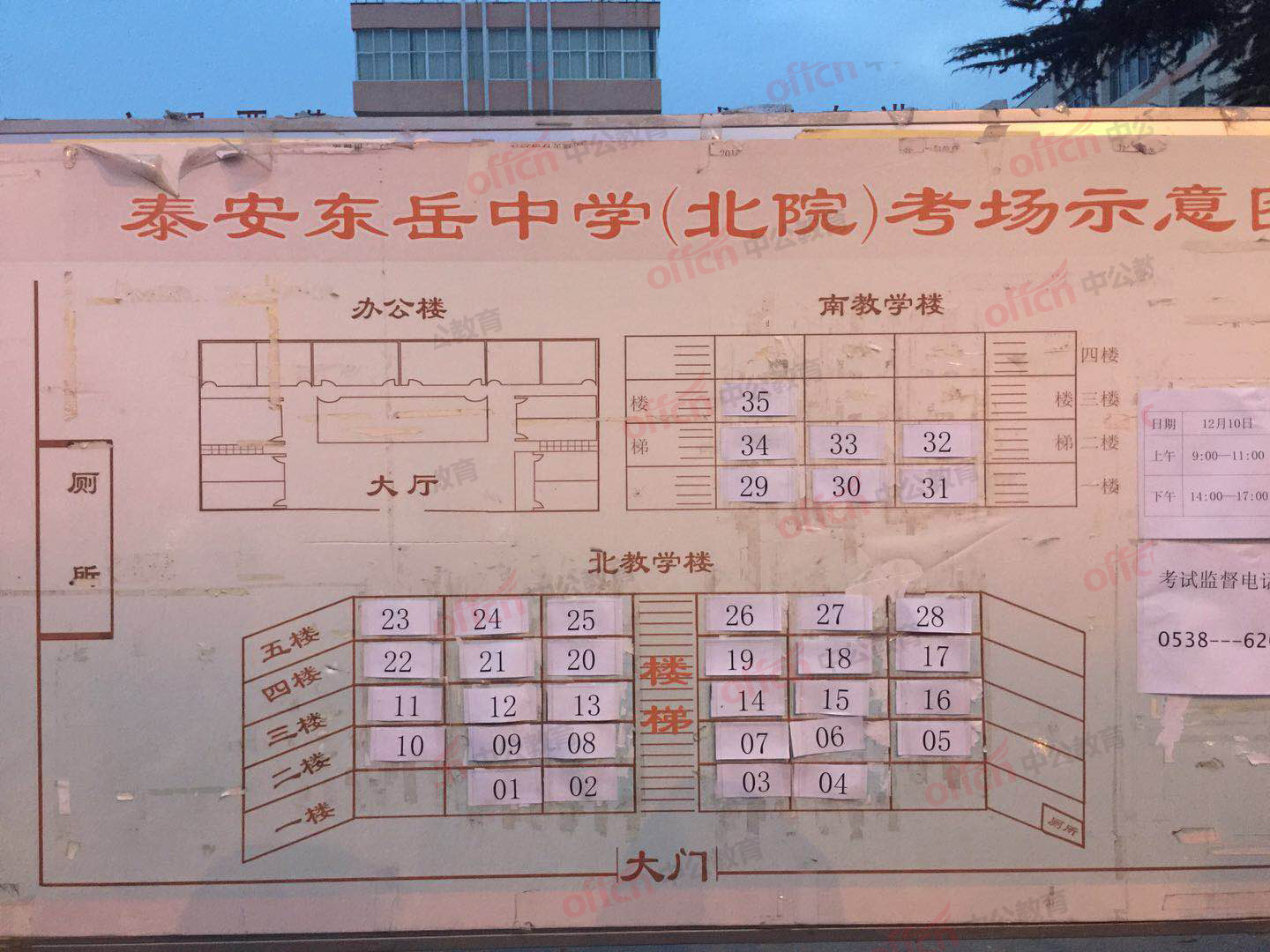 2018年国家公务员考试将于12月10日进行,准考证打印时间为12月4日10:00至10日12:00期间。另外为帮助各位考生了解所在考场考点信息,山东中公教育为大家整理发布2018国考笔试山东考区:泰安东岳中学北考场分布图。预祝各位考生考试成功!