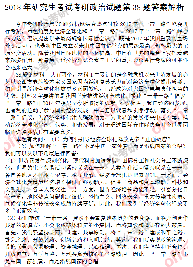 中公考研网考后为大家整理发布2018年考研政治分析题第38题答案,中公考研政治研究院老师深度解析试题变化及难度,帮助考生做好考后估分(估分入口)、从容迎战后续复试调剂!更多2018考研政治试题、答案及解析请点击【2018考研试题答案解析专题】。