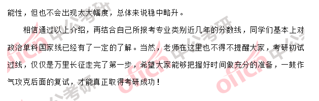 中公考研网考后为大家整理发布2018考研政治国家分数线预测,中公考研政治研究院老师深度解析试题变化及难度,帮助考生做好考后估分(估分入口)、从容迎战后续复试调剂!更多2018考研政治试题、答案及解析请点击【2018考研试题答案解析专题】。