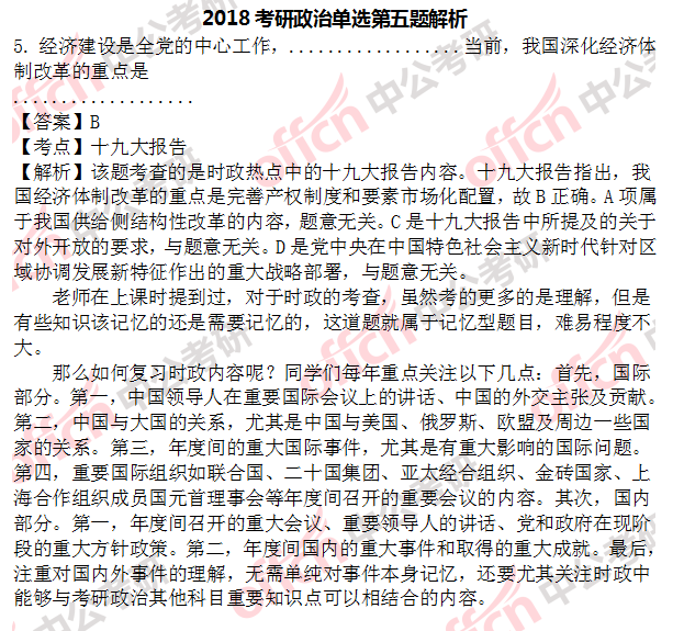 中公考研网考后为大家整理发布2018年考研政治单选题第5题答案及试题解析,中公考研政治研究院老师深度解析试题变化及难度,帮助考生做好考后估分(估分入口)、从容迎战后续复试调剂!更多2018考研政治试题、答案及解析请点击【2018考研试题答案解析专题】。