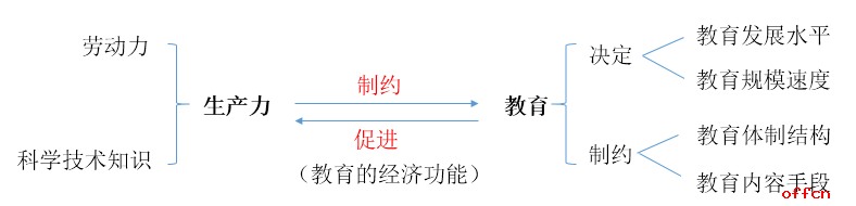 教育作为一种社会现象,与其他社会系统之间产生各种关联。一方面,教育受社会发展的制约,另一方面教育又对其他社会系统产生一定的影响或作用。前一个方面涉及的就是教育的社会基础、背景,后者就是教育的社会功能。这里我们主要介绍常考的三个关系:教育与政治、教育与生产力、教育与文化。