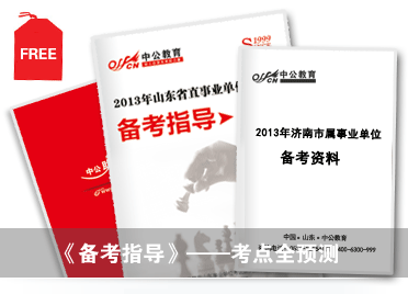 2013济南市属、槐荫区事业单位考试【押密卷】绝密!真题命中率高!获取方式:关注"山东中公教育"新浪微博,转发微博活动并填写完成页面用户信息,即可免费获得2013济南市属、槐荫区事业单位考前押密卷,模拟考试亲身体验所有考试题型,查缺补漏。